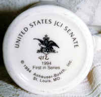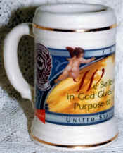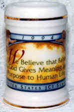 The stein is a special event stein issued in 1994 commemorating the 50th anniversary of the United States JCI Senate (the Jaycees). A national organization devoted to community service by young business and professional people. The stein is a First in a Series, although I have not seen anymore. |