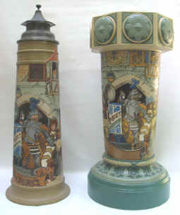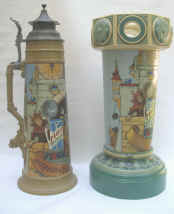 ![]() Form 2649 is a 19 inch tall tap. As can be seen in the accompanying photographs, the design on the Beer tap and master stein are very similar, the main difference being the writing in the banner to the left lower front of the master stein (Note that this writing does not appear in the form 2580 steins). | ||