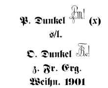 Most of the dedications on glass student association steins are found on the back of the stein under the handle and are difficult to photograph. The inscription on this stein, shown below, translates as "P. Dunkel, a former senior (President) of Corps Palaiomarchia Halle, (gives this stein) to his dear O. Dunkel, a member of (most likely) Corps Rhenia Halle in friendly remembrance of Christmas, 1901". It is interesting to note that the last names of these individuals are the same. Could this have been a father giving a gift to his son, or an older brother giving to his younger brother?