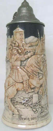 Featured this month is a pottery relief stein honoring Georg von Frundsberg.