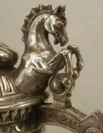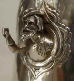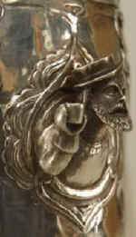 Editor's Note: It has been brought to our attention that a large percentage of Russian silver on the market today is not authentic. A stein very similar to this month's Featured Stein is labeled "fake" on the web site "Steve on Steins". (http://www.steveonsteins.com/photo-drafts-fakes-scams) This month's Featured Stein may not be what it is purported to be, but it is still a stein with superb workmanship. So enjoy looking at it, but be wary if you intend to buy any Russian sliver. |