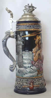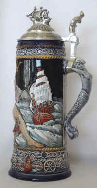 Neptune stein. The mermaid handle originally appeared on the Thewalt Navy stein. It also appears on