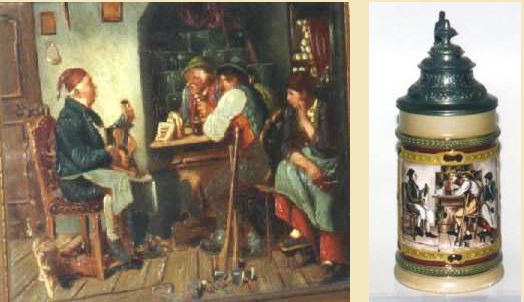 This short article provides a small sample of those 19th century works of art that HR drew inspiration from when decorating their beer steins, works by von Kaulbach, von Defregger, Grutzner, Hoffmann, Schweninger and others. |
