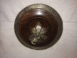 The word “Mazer” is thought to be derived from the old German word “maser”, which means “a spot”, referring to the spots in the wood used to make these vessels. The vessels were often used in drinking ceremonies, and were meant to be passed between drinkers. By some accounts the cup was held with two hands while the drinker stood up, the person directly to their right, also stood up, and held the lid with their right hand, to show they had no weapon, or bad intentions. Assassination was a real threat while drinking in the Middle Ages. In fact some of the inscription on this Mazer cup refers to that fact, basically saying “If you are going to pull a weapon, you had better be fast “.