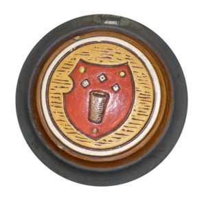 The lid of this stein includes a pottery inlay within a pewter ring,