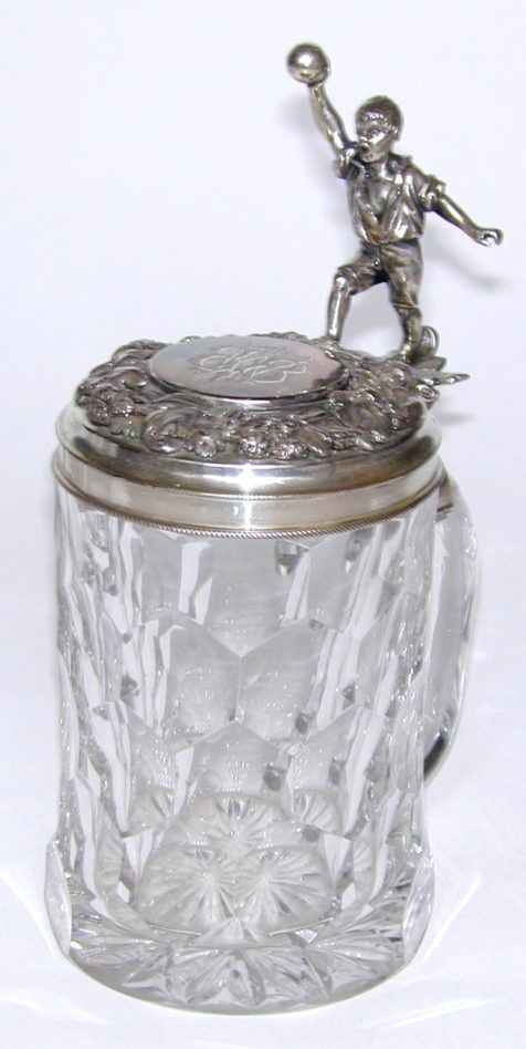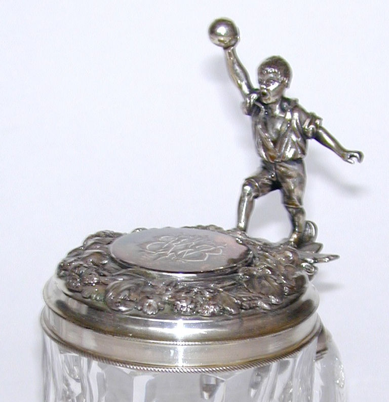 The glass stein with silver mounts which we see here weighs an