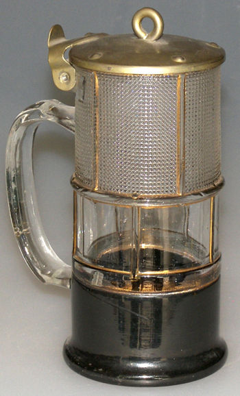 Miner's Lamp or Lantern. The base is enameled black, and the body has
