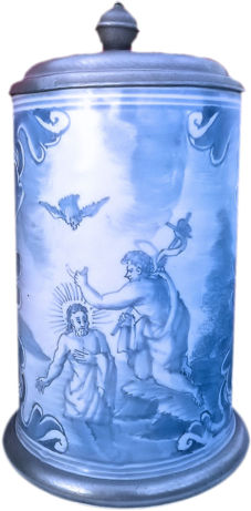 Walzenkrug. On the body is a scene of John the Baptist holding a cup in