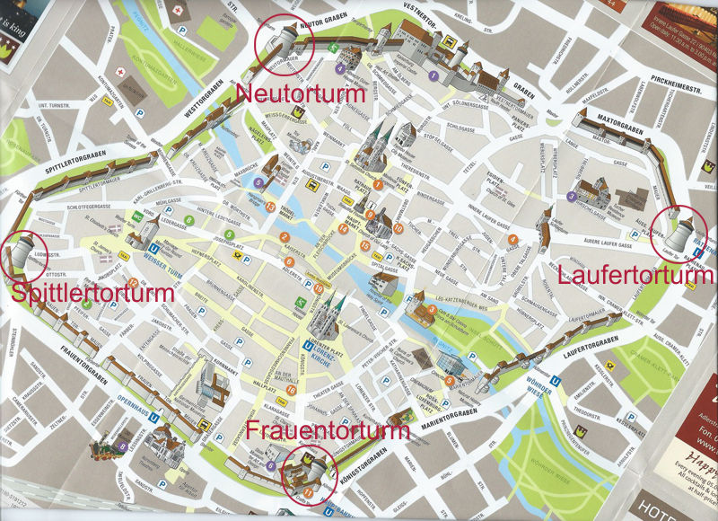 round garrisoned towers in the old city walls of Nuremberg, and they