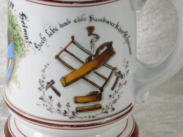hand painted, porcelain stein with a footed base, in near mint