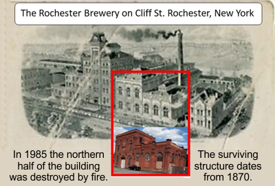 The Rochester Brewing Company was founded in 1875 in Rochester New York and was originally located on Cliff Street. During the period 1889 to 1902, the brewery operated as a branch of the large Bartholomay Brewing Company, also of Rochester. In 1902, Rochester Brewing went independent again and continued in operation up until it was closed by Prohibition 1920-1933.