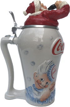 stein. The term "Coca-Cola" adorns the body of the stein. The top of